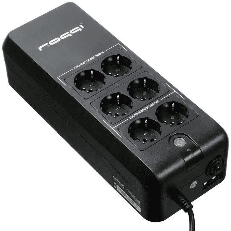 UPS стабилизирует напряжение на выходе: при сетевом напряжении 170–270 В подает на подключенные устройства 220 В ±10 % без перехода на питание от батареи. Автономный режим обеспечивает герметичная свинцово-кислотная батарея емкостью 7 А·ч. Время перехода на батарейное питание — 2… 8 мс (обычно), но не более 12 мс. Длительность работы в автономном режиме под нагрузкой 100 Вт — 20 мин. Продолжительность подзарядки АКБ до 90 % емкости — 10 ч.