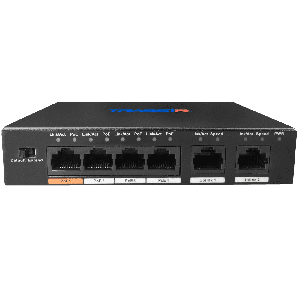 Сетевой коммутатор TRASSIR TR-NS1006-60-4POE с нерегулируемой подачей питания по Ethernet (PoE) оснащен четырьмя портами PoE 10/100 Мбит/с, которые позволяют питать подключенные устройства (IP-камеры и др.) по витой паре на расстояние до 250 метров. Также коммутатор имеет два uplink-порта 10/100 Мбит/с для каскадного соединения с другими коммутаторами.