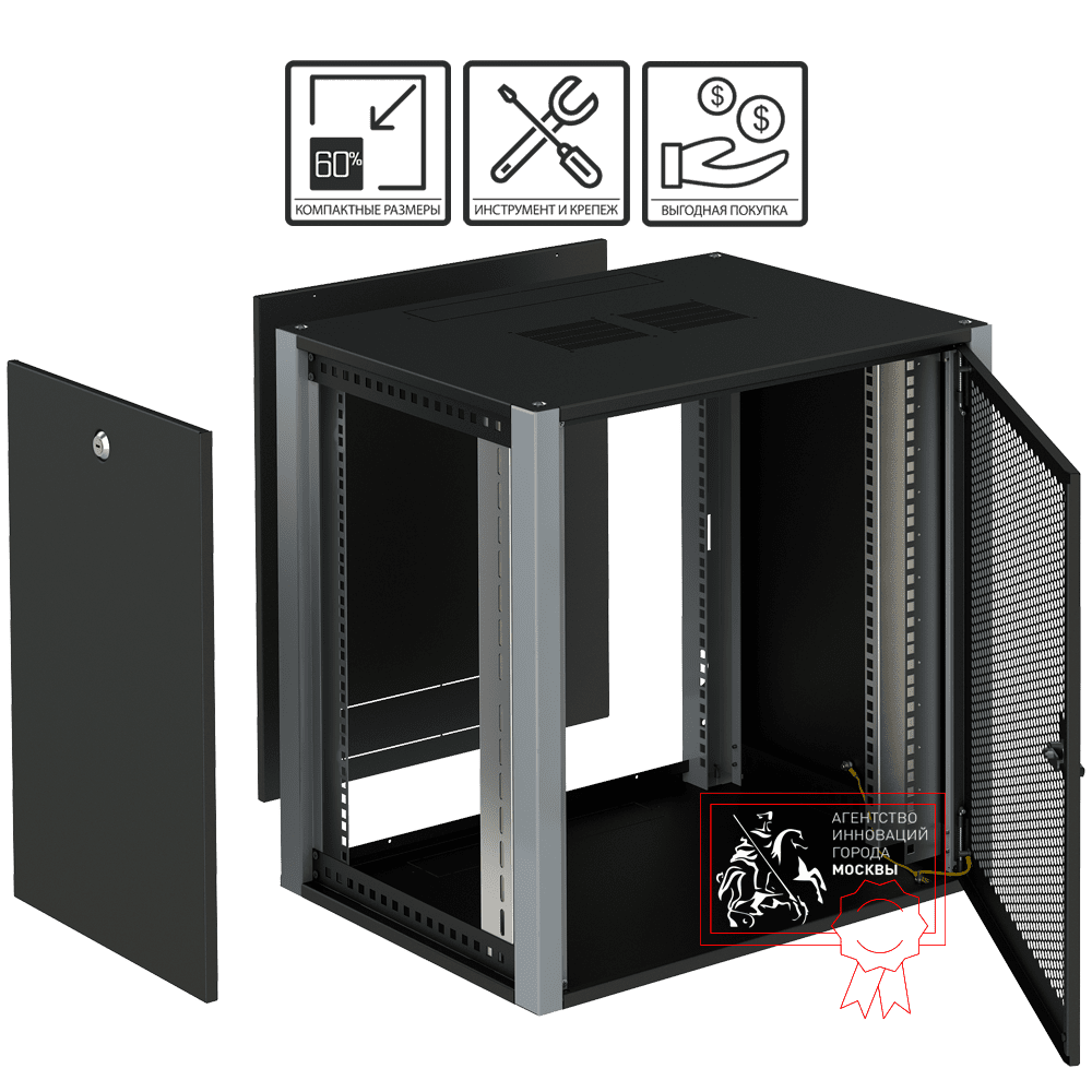 Листовые детали покрыты предварительно фосфатированной полимерной порошковой краской (сигнальный черный, RAL 9004). Монтаж — универсальный. Защита — IP20. Вес — 12.4 кг.
