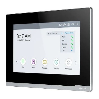 Данное устройство представляет собой IP-видеодомофон с 7-дюймовым цветным TFT сенсорным экраном (разрешение 1024 x 600).