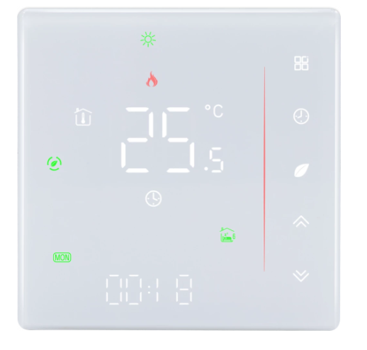 Термостат совместим с системами электрического и водяного отопления, включая теплый пол, конвекторы, а также газовые и электрические котлы. Лаконичный дизайн и тонкий корпус позволяют устройству гармонично вписаться в любой интерьер. Информативный дисплей и сенсорные кнопки обеспечивают удобство и простоту использования.